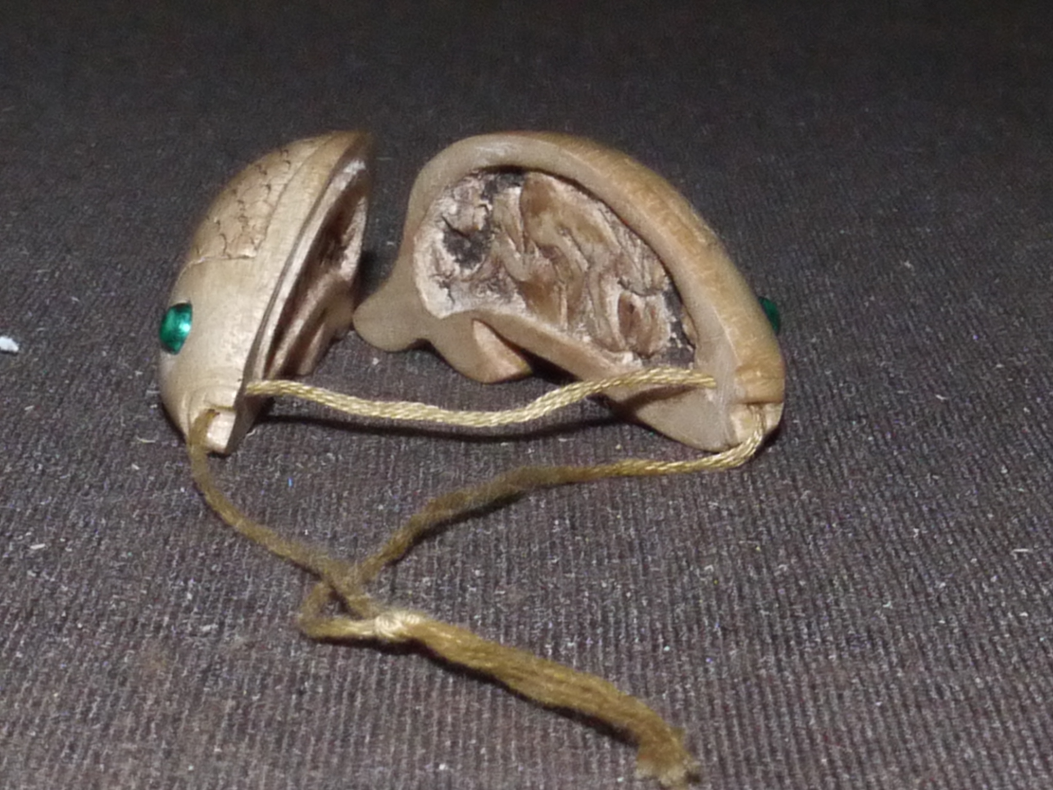 I spent a lot of time creating the feathered look and making sure the finish was clean. Because huon is a pale, yellowy wood I decided a bit of colour was necessary so I used tan shoe polish. Because shoe polish is wax based it gives a good finish whilst adding colour, with the cuts absorbing more polish and giving it highlights. It ended up with an extra coating as I inadvertently left it in my jeans pocket and it was well washed and a little paler after the experience, but it survived and was restored to its former glory. It measures about 25mm x 40mm (1″x1.5″)